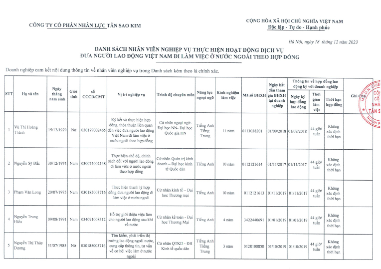 Minh bạch mọi thông tin và chi phí; hợp đồng rõ ràng; luôn đặt quyền lợi và sự hài lòng của người lao động làm trung tâm.